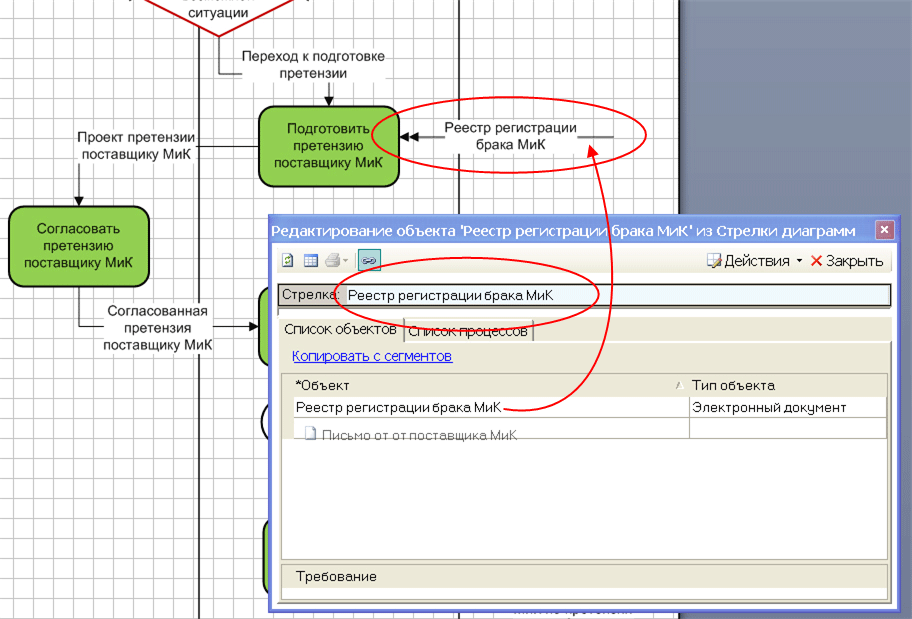 Рис. 3. Пример прикрепления документов к стрелкам в Business Studio.