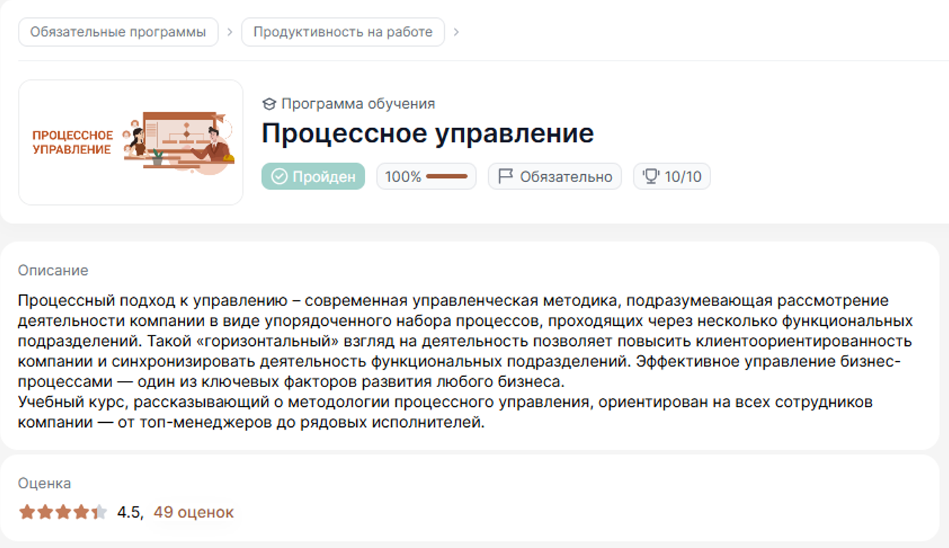 Рис. 6 – Программа обучения «Процессное управление»
