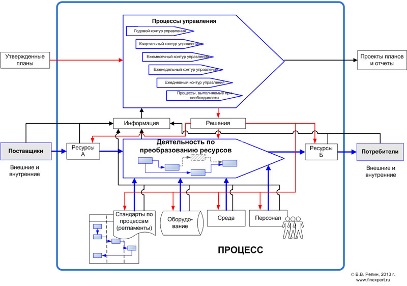 повторение определенных действий по установленной процедуре, то это наше «облако» процессом не является. Менеджер выполняет одни и те же действия, но каждый раз по-разному. Процесса нет, но управляемая, целенаправленная деятельность есть. Парадокс? Вопрос только в определении процесса. Мы предлагаем рассматривать процесс в широком смысле – как деятельность, преобразующую входы в выходы. Тогда в данном случае мы управляем процессом при помощи установленных ограничений на ресурсы, системы целей и показателей, системы стимулирования.