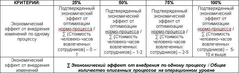 Предлагается оценивать затраты рабочего времени участников проекта, связанные с описанием, анализом, обсуждением и выполнением мероприятий по реорганизации/оптимизации процессов.