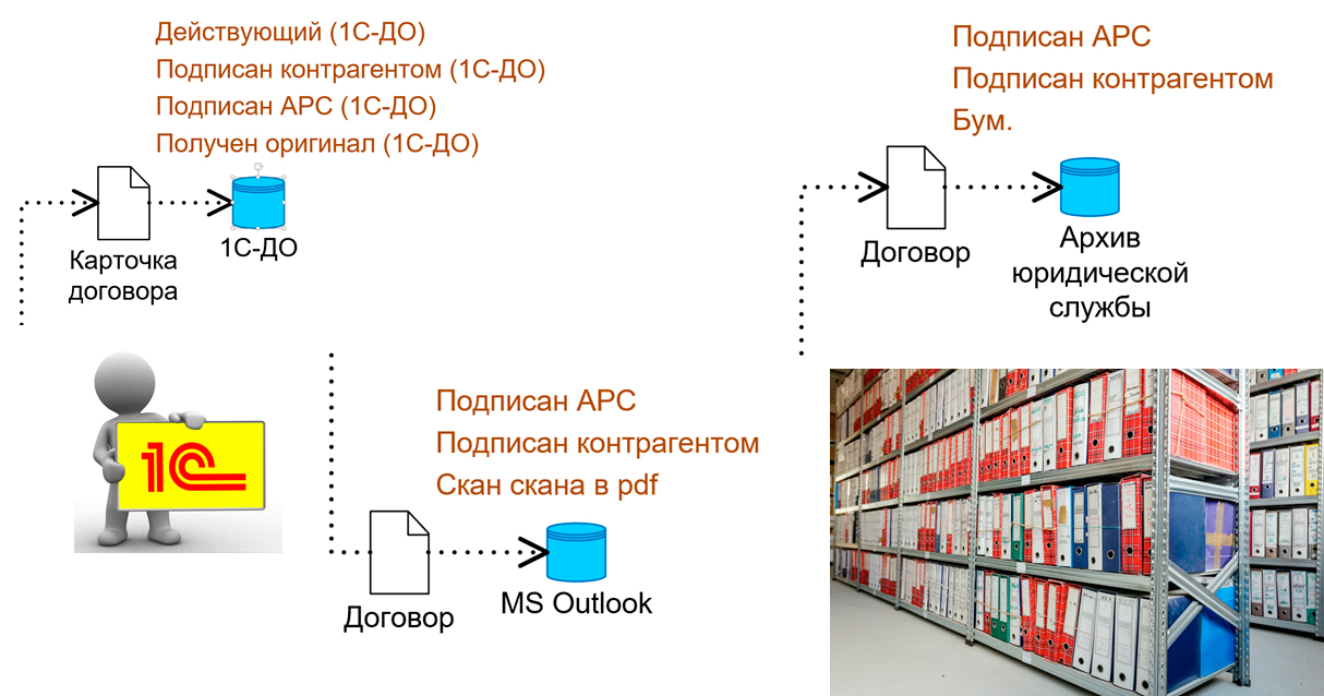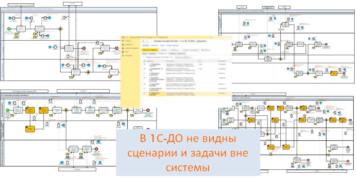 Нужны ли эти сценарии, если уже есть автоматизированный маршрут в 1С-ДО? Да, нужны. Они показывают задачи, которые должны выполнить участники бизнес-процесса, в том числе «оффлайн».