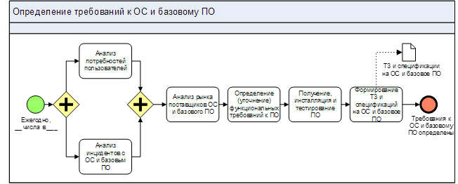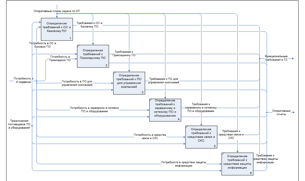 На рис. 2.4 показан следующий уровень декомпозиции (процесс специально сокращен – это только пример методического подхода) – показаны процессы определения потребностей к операционным системам и базовому ПО.