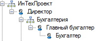 Графическая диаграмма формируется отдельно для каждого элемента типа “подразделение” с нужной “глубиной” отображения подчиненных подразделений и должностей. На приведённых ниже иллюстрациях видно, что среда моделирования Business Studio позволяет: