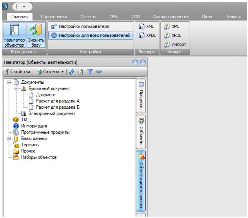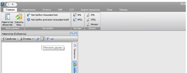 Чтобы в Навигаторе в закладке «Субъекты» отобразились импортированные элементы, нужно нажать кнопку «Обновить дерево».