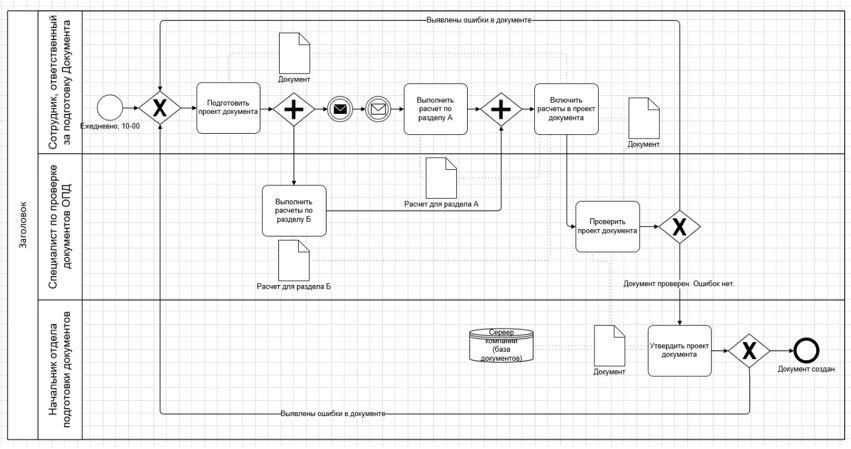Схема бизнес-процесса после импорта выглядит следующим образом: