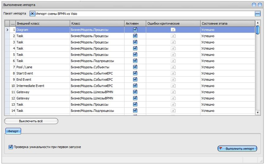 Пакетом импорта удобно пользоваться для загрузки готовых схем бизнес-процессов из MS Visio в Business Studio.