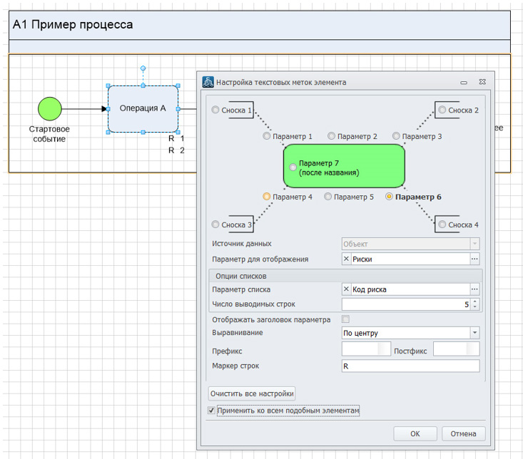 Рис. 3.5. Визуализация номера риска на схеме процесса.
