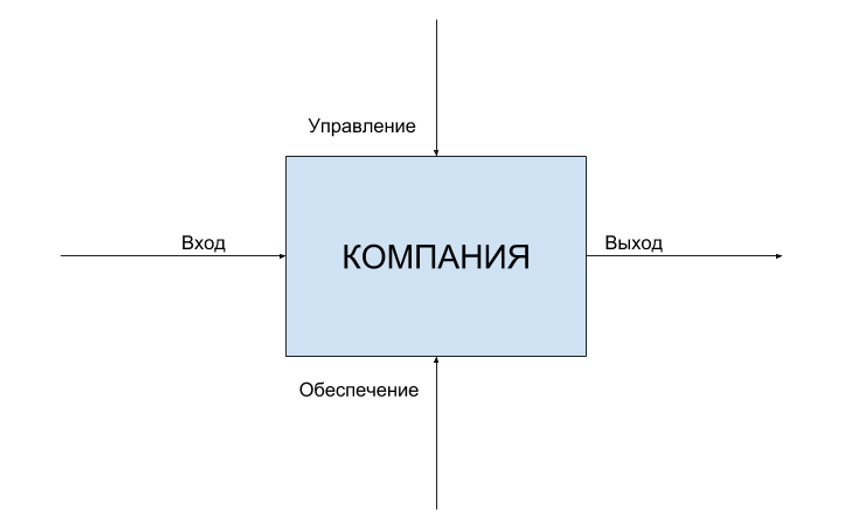 Очевидно, что если на компанию не оказывается управляющее воздействие или в стрелке “Управление” нет точных формулировок о целях компании, то качество содержимого в стрелке “Выход” резко падает.