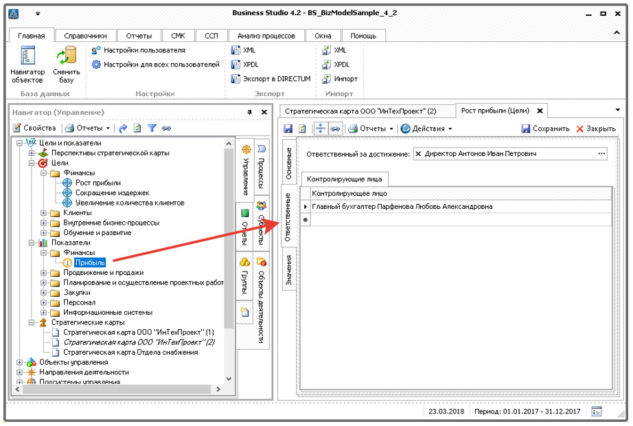 Рис. 2.5. Назначение сотрудника, ответственного за показатель достижения цели