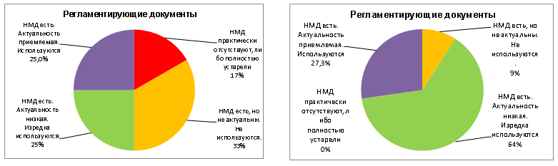 Рис. 3. Оценка степени актуальности базы регламентирующих документов компании, 2012 год (слева), 2013 год (справа).