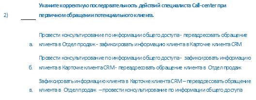 Рис.4. Пример теста на знание регламента процесса сотрудниками (фрагмент).