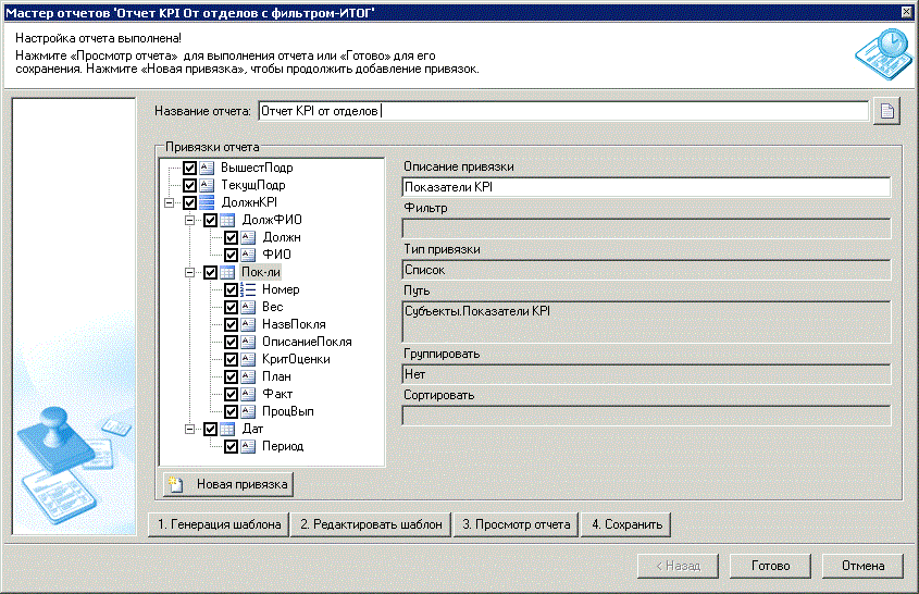 Показателю Важно учесть, что список показателей с необходимой информацией также можно импортировать с помощью пакета импорта в Business Studio. 3. Используя созданные поля, следует создать отчет, который будет автоматически рассчитывать процент выплаты бонусов (см. рис. 5):