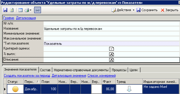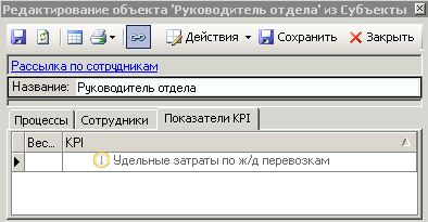 Рис. 3. Закладка в Business Studio с Показателями KPI, назначенными Субъекту